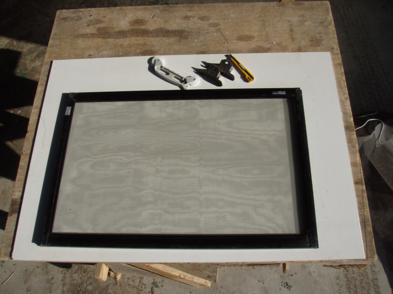 カビだらけになった浴室の網戸の張り替えを行っているところです。